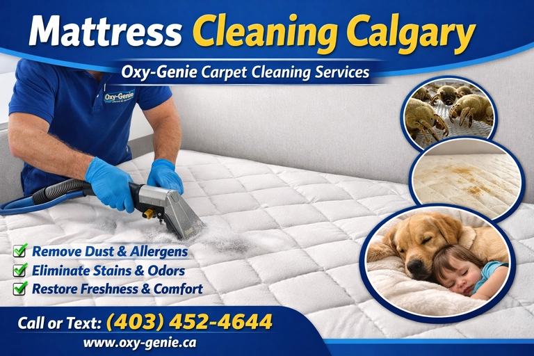 Looking for professional mattress steam cleaning in Calgary, Alberta? Oxy-Genie Carpet Cleaning Services provides trusted mattress cleaning in Calgary for homeowners who want a fresher, cleaner sleeping surface without the hassle of trying to deep-clean a mattress on their own. Over time, mattresses can collect everyday dust, body oils, dullness, light staining, and unwanted odours. Professional cleaning helps refresh the fabric and improve the overall feel and appearance of the mattress.